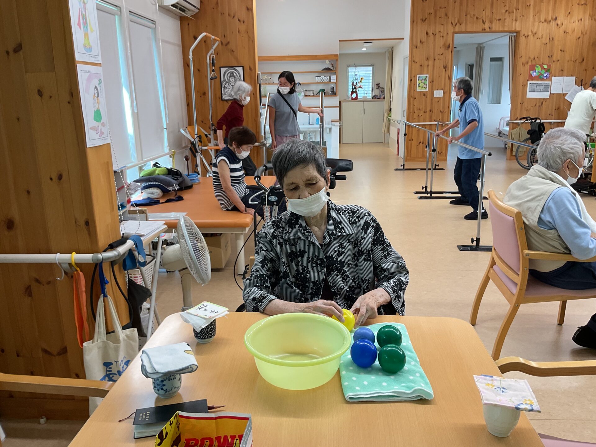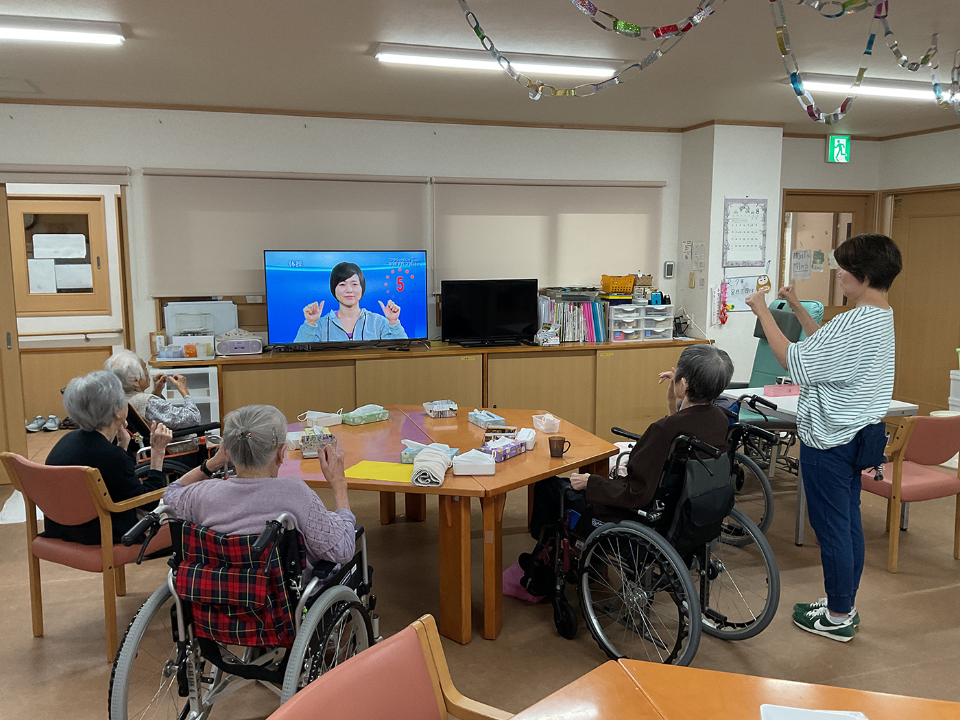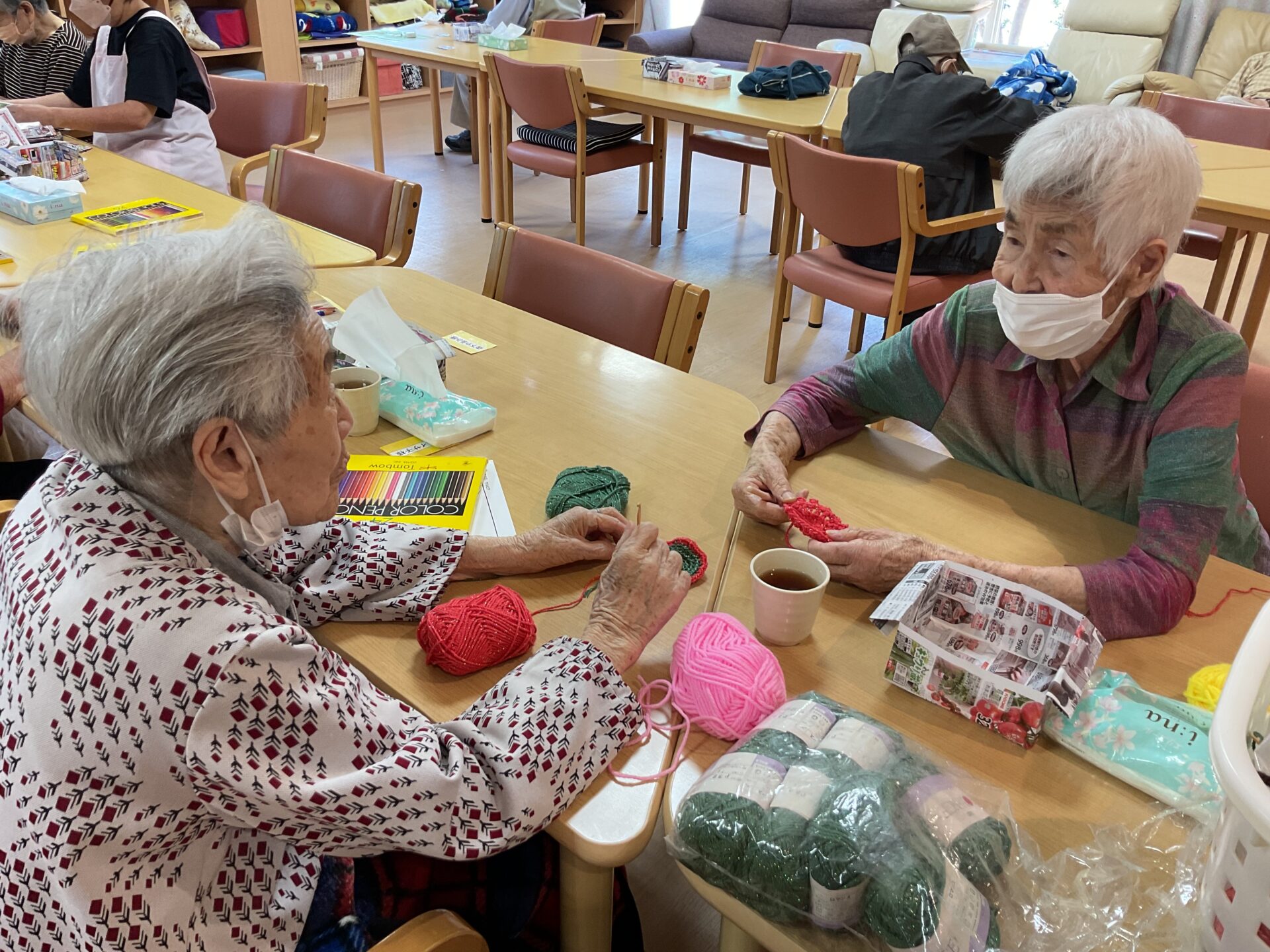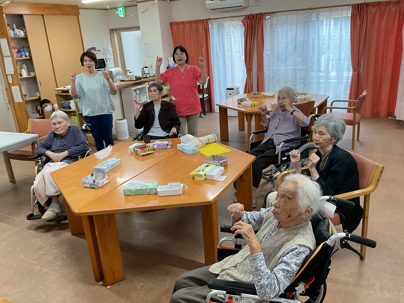 ご利用者様の機能維持や向上に繋がるようプログラムを考案し、また脳トレや指先を使ったレクリエーションを実施し、心身の機能の維持や意欲向上ができるように努めています。