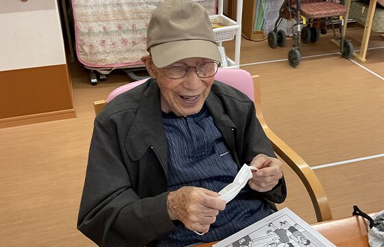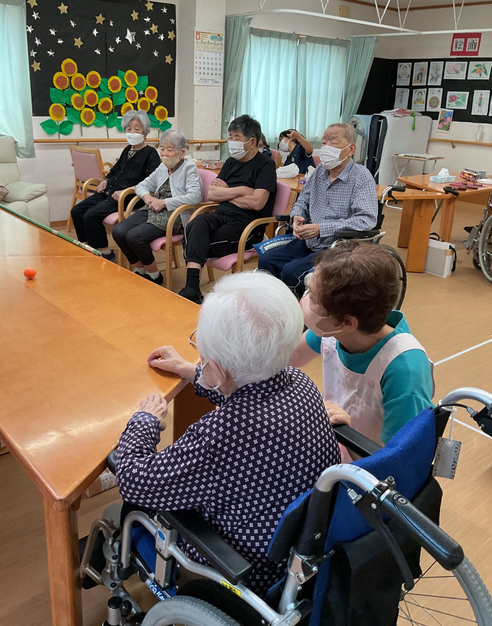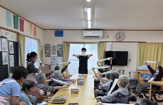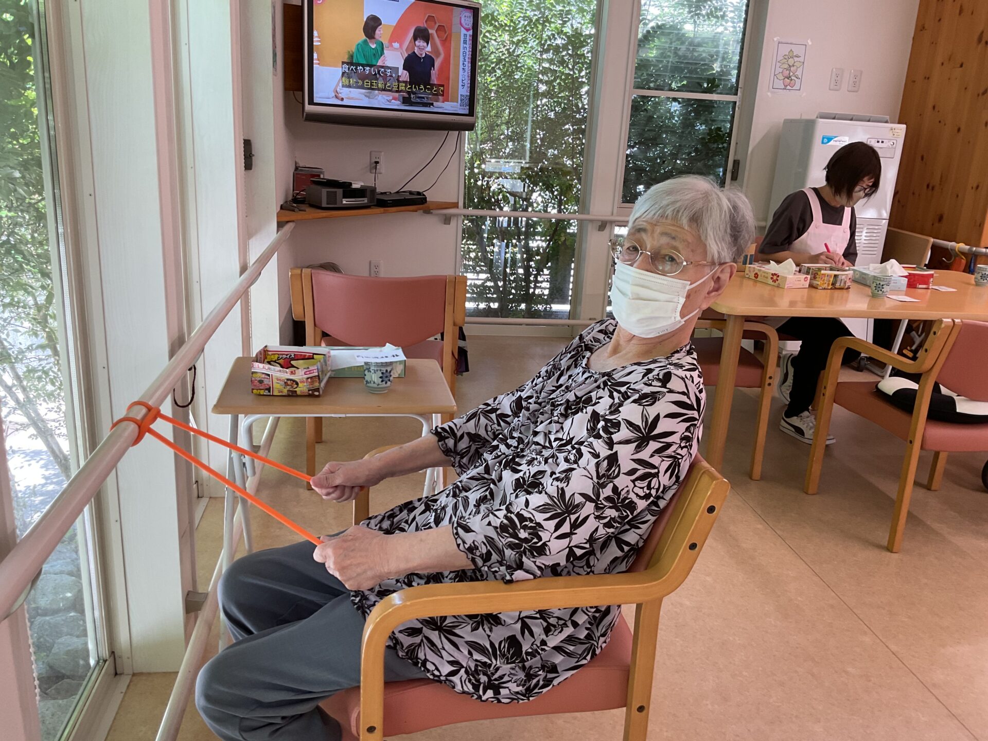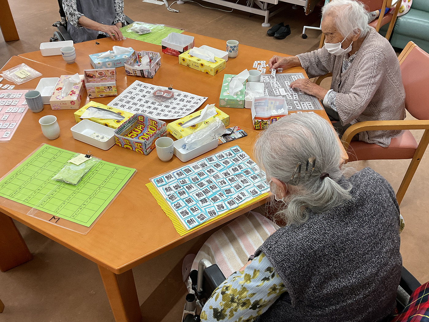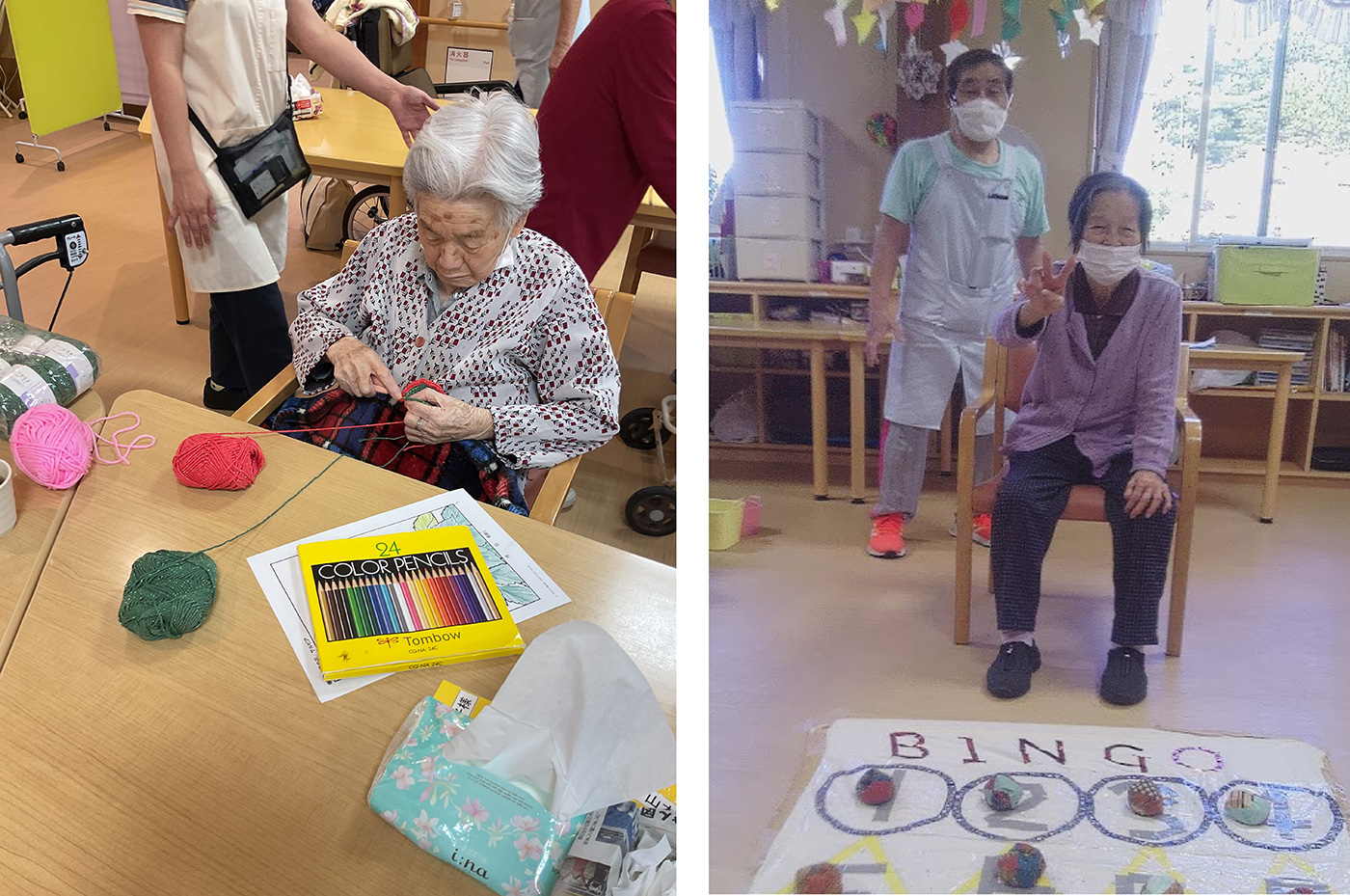 ご利用者様の機能維持や向上に繋がるようプログラムを考案し、また脳トレや指先を使ったレクリエーションを実施し、心身の機能の維持や意欲向上ができるように努めています。