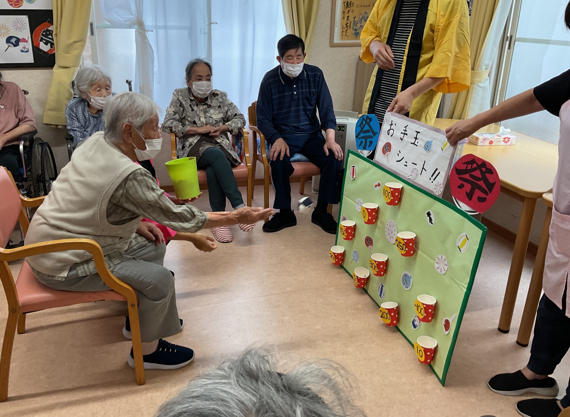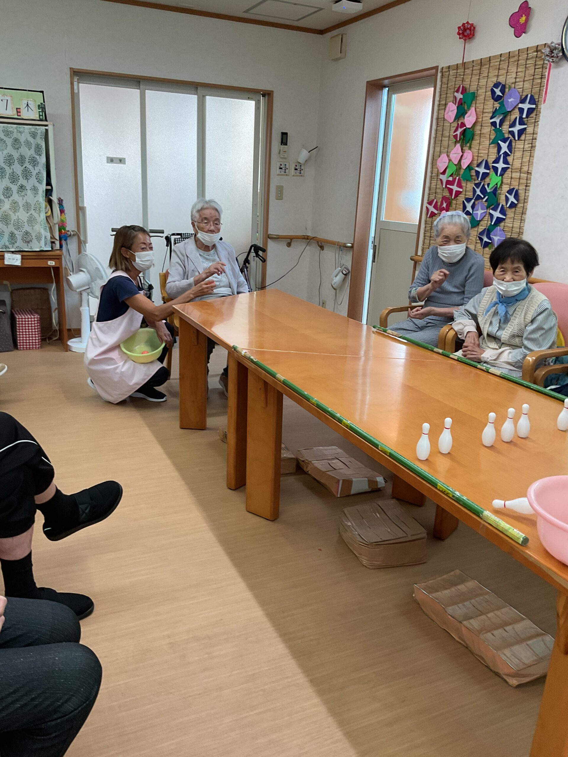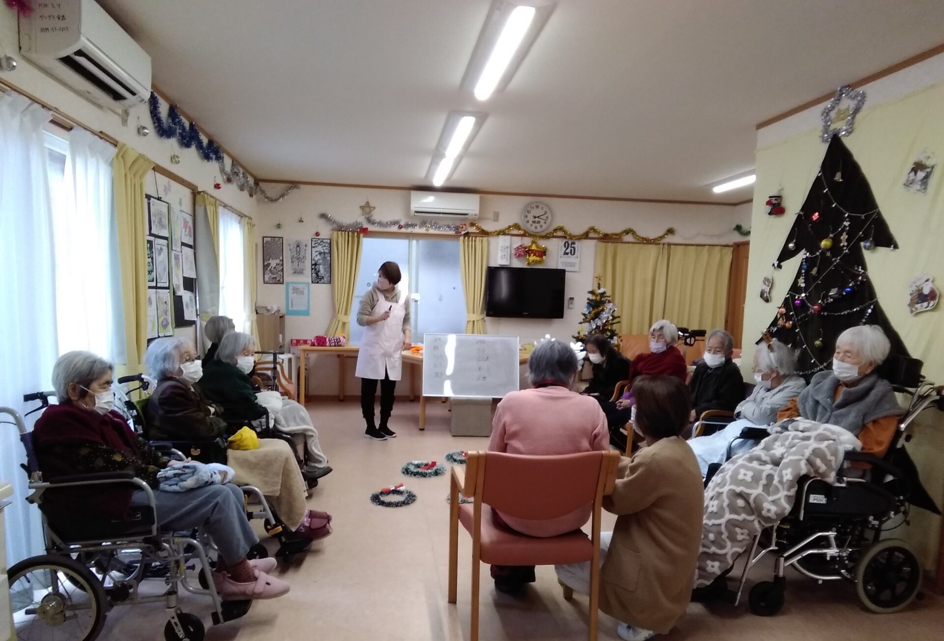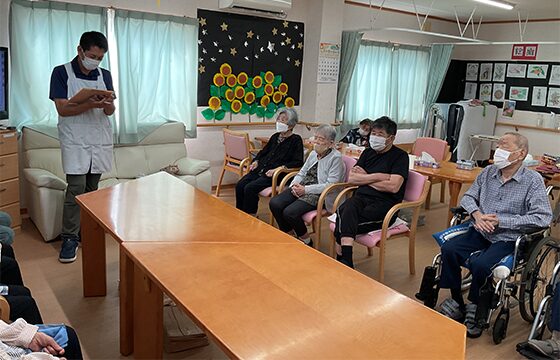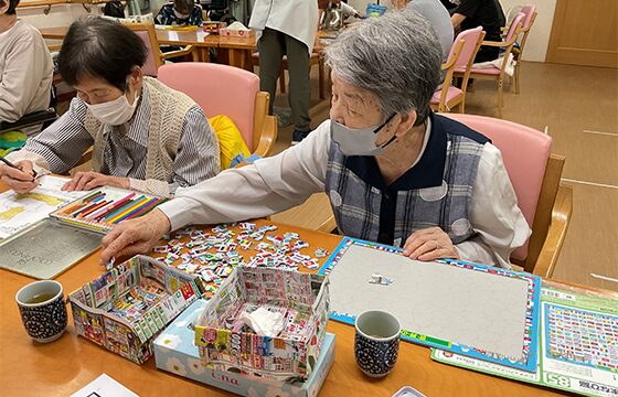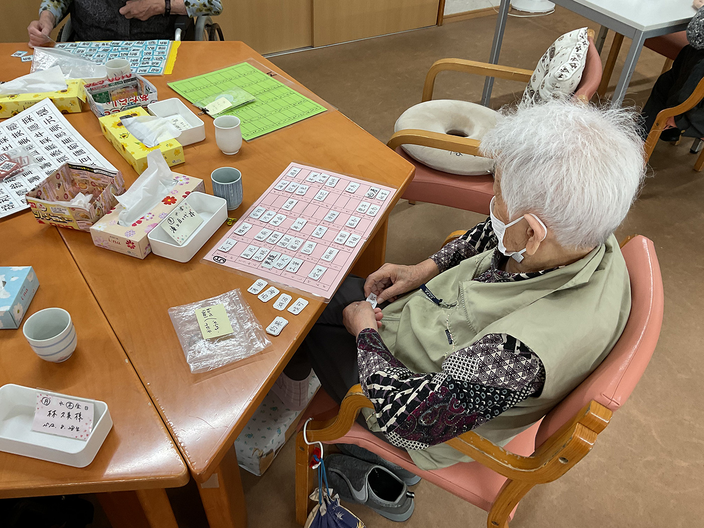 ご利用者様の機能維持や向上に繋がるようプログラムを考案し、また脳トレや指先を使ったレクリエーションを実施し、心身の機能の維持や意欲向上ができるように努めています。