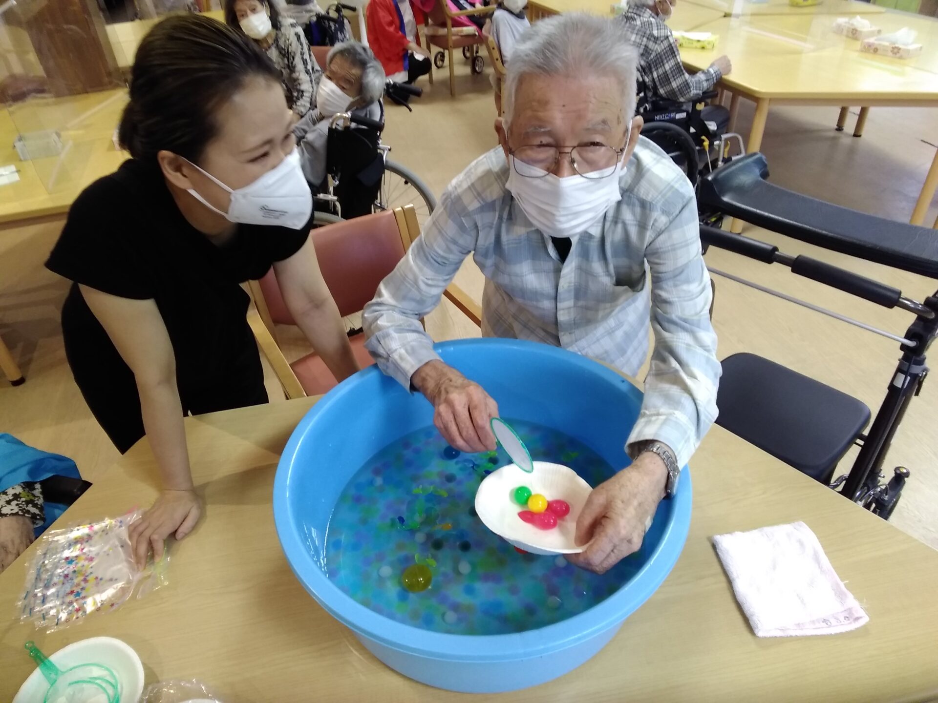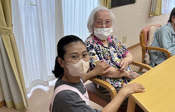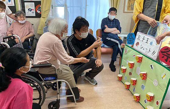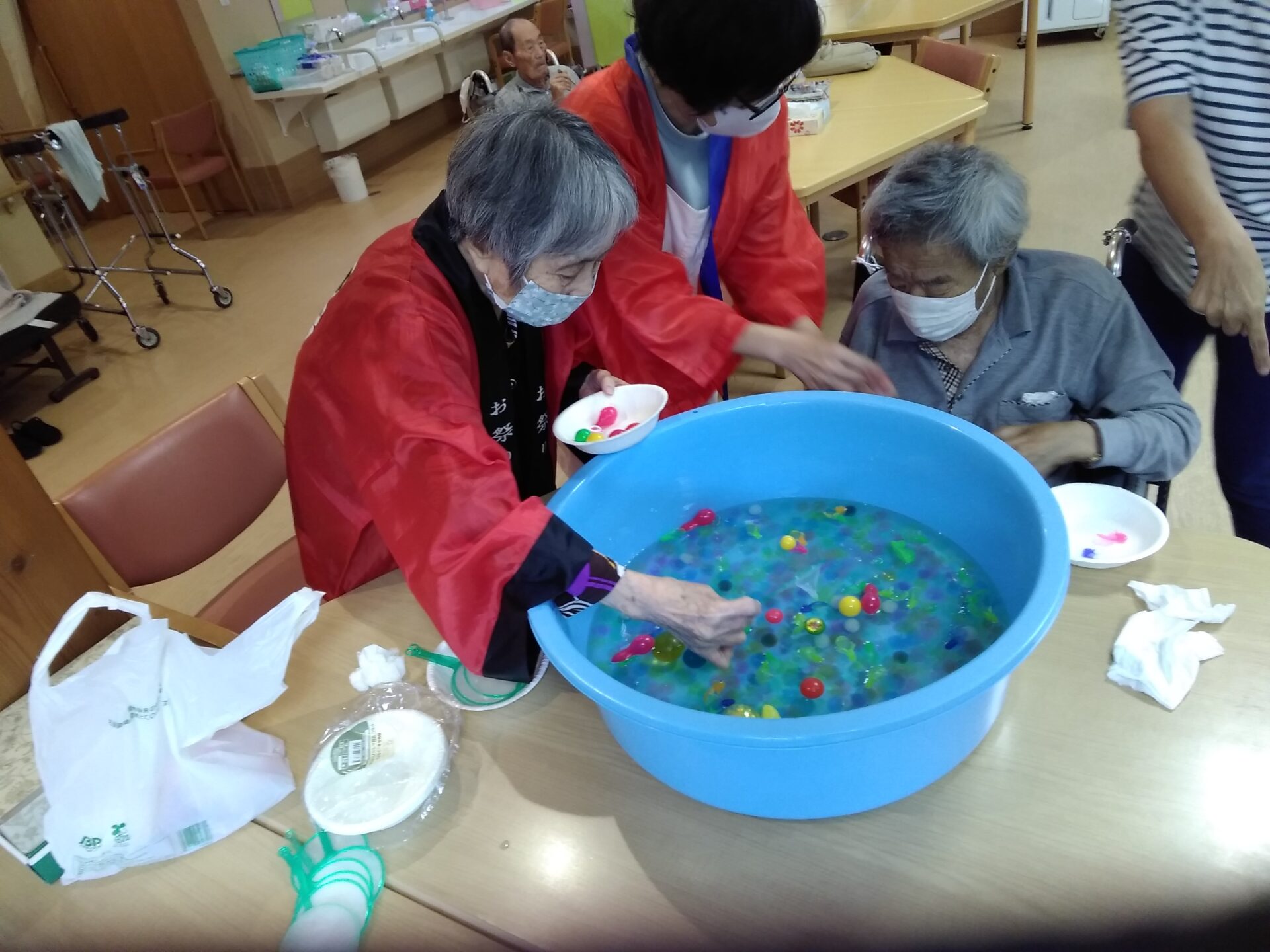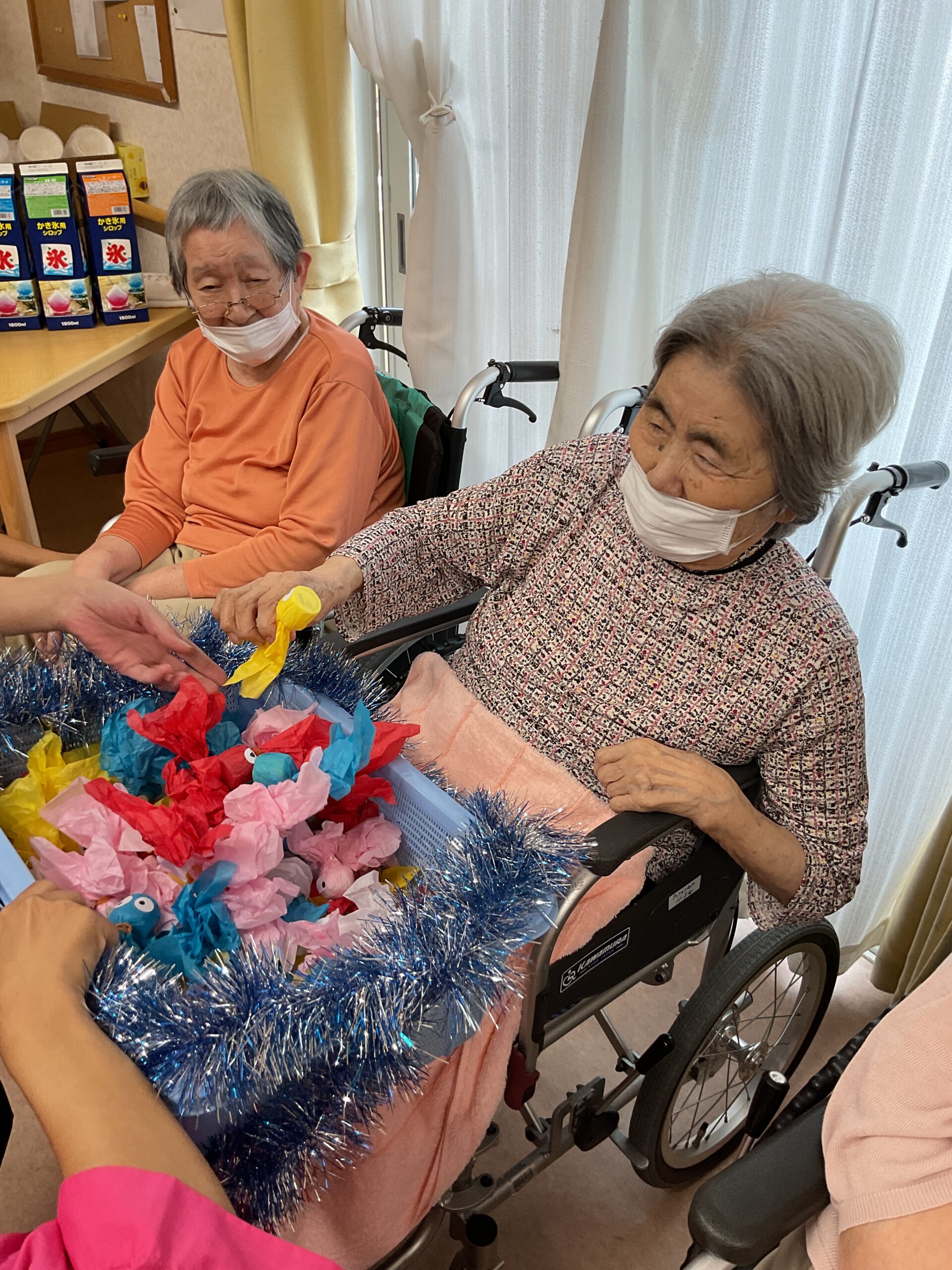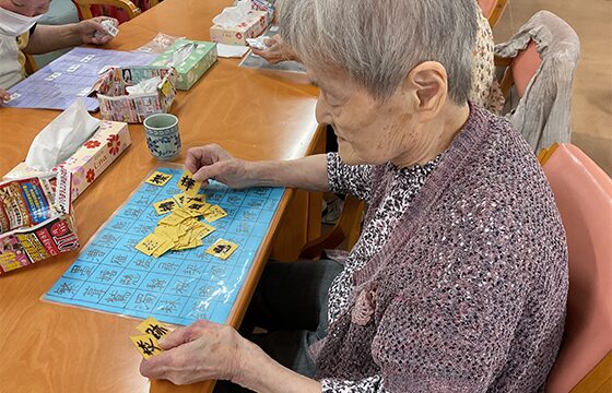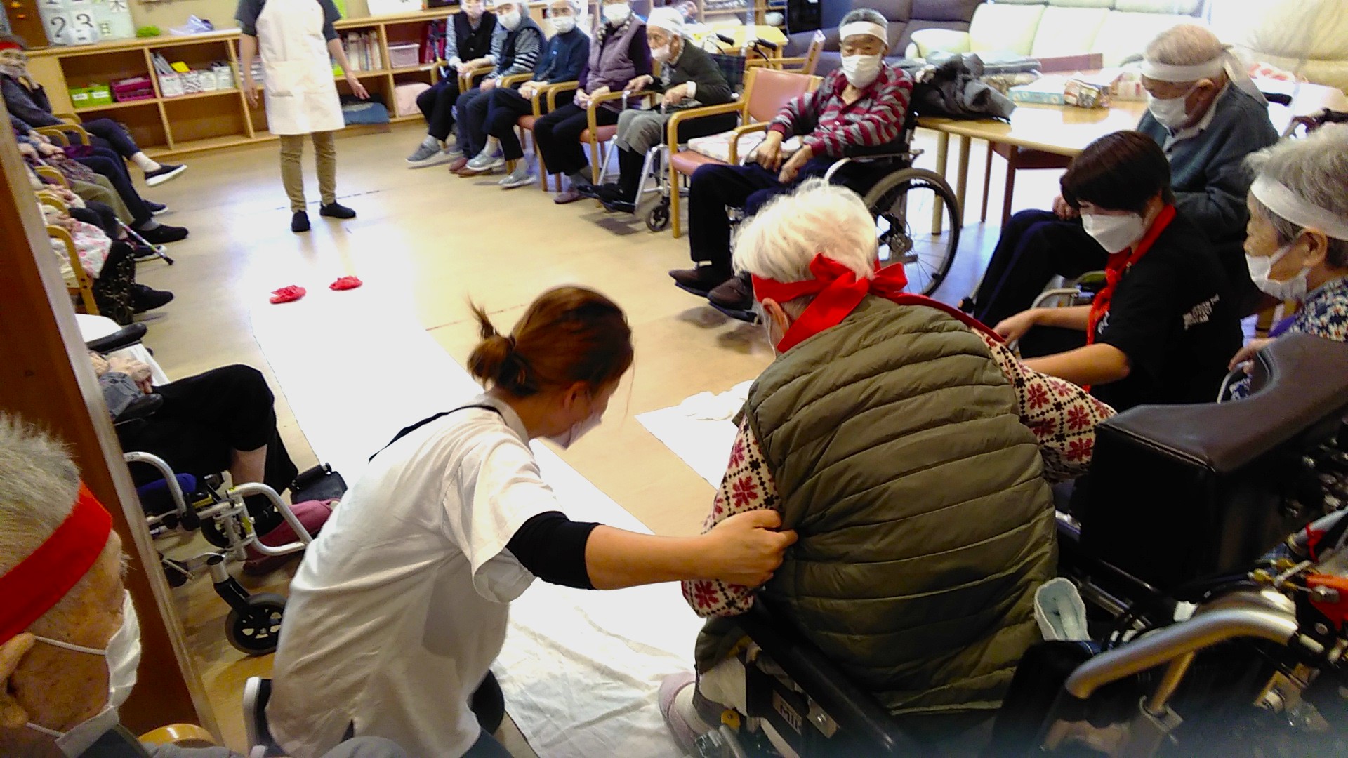 ご利用者様の機能維持や向上に繋がるようプログラムを考案し、また脳トレや指先を使ったレクリエーションを実施し、心身の機能の維持や意欲向上ができるように努めています。