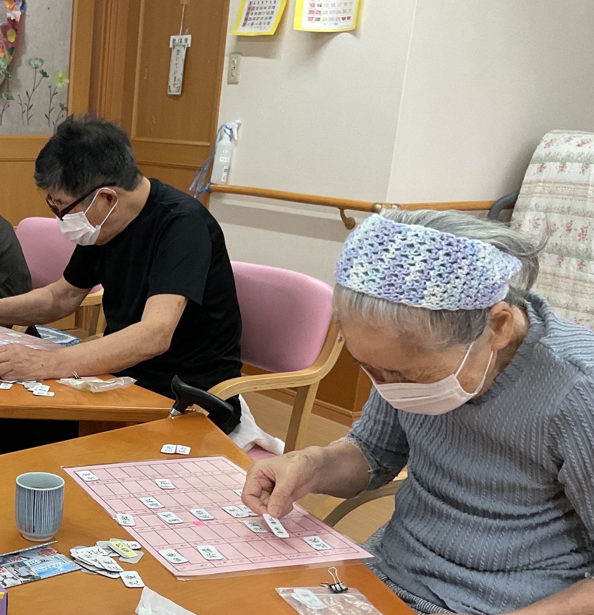 脳トレ、塗り絵、貼り絵等もあり、楽しく過ごしていただけます。