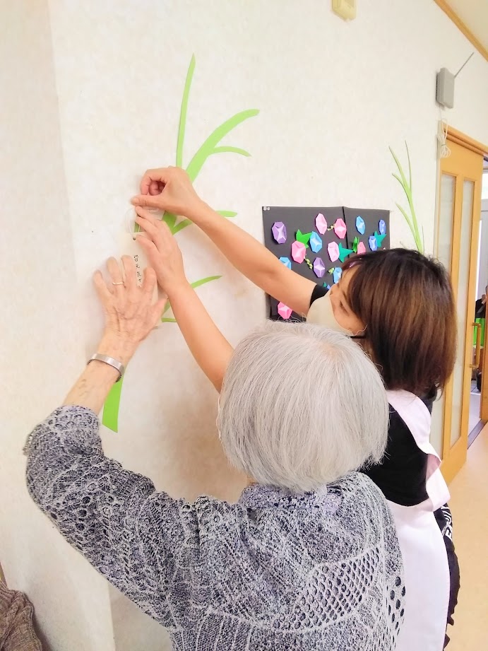 ご利用者様一人一人に合わせた日常生活のお手伝い、手作業をご利用者皆様で楽しんでいただけるようスタッフが毎日創意工夫しレクリエーション等を実施して心身の機能の維持向上ができるように関わっています。