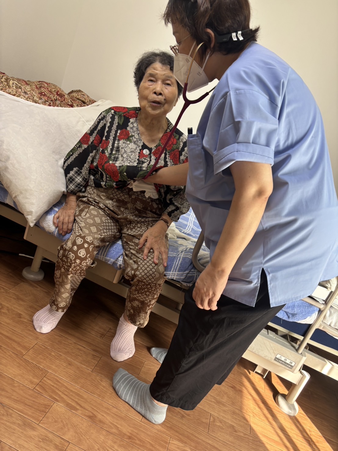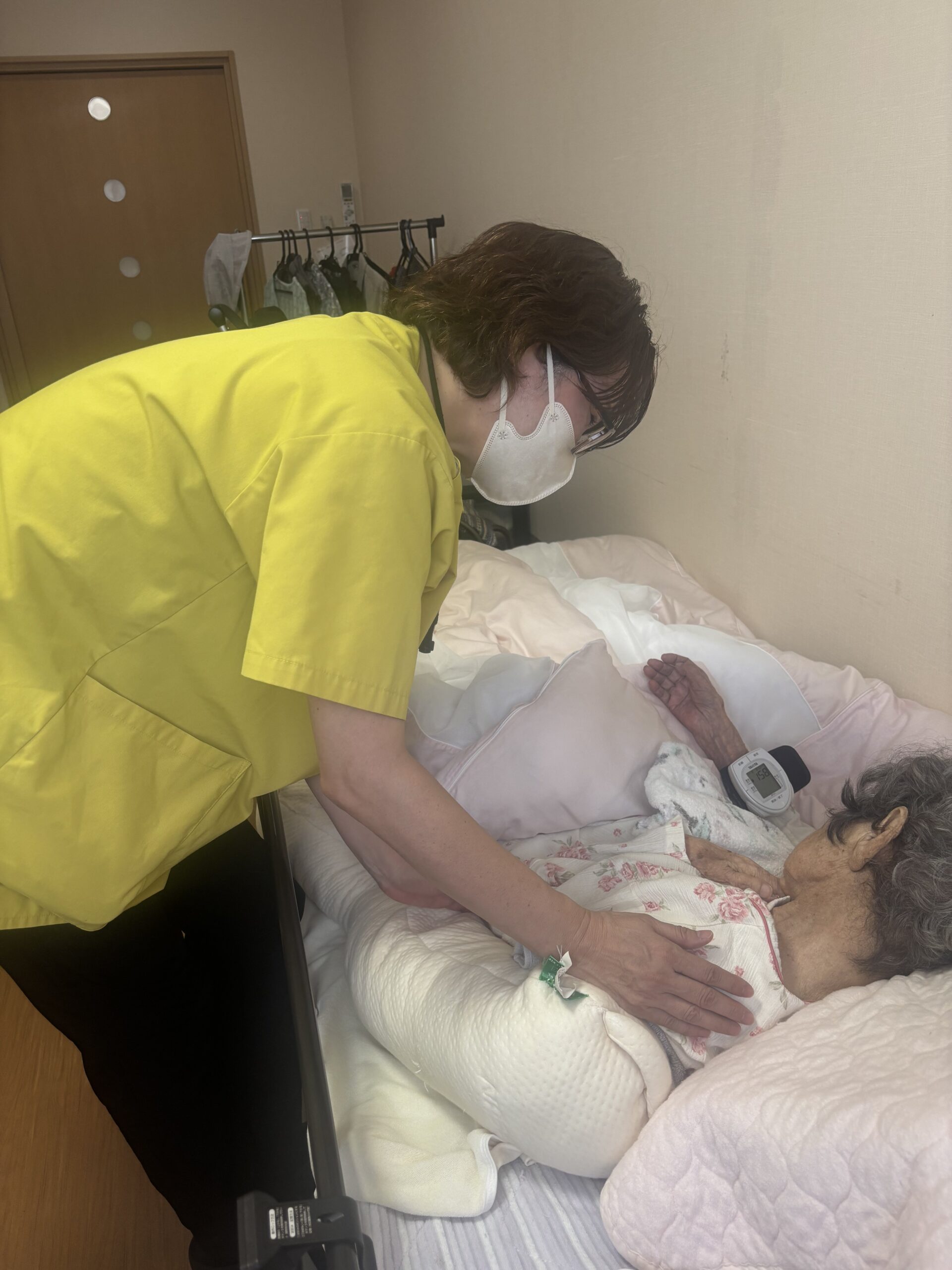 病状観察、血圧・体温測定、脈拍チェック、低栄養・運動機能低下を防ぐリハビリ、他の機能低下予防のリハビリ、療養中のお世話、心理的サポート、お薬管理、介護生活相談、医療処置 等 ご本人様、家族様の不安な気持ちに寄り添い安心して生活できるように看護します。 療養環境の確認と助言 住み慣れた自宅、寝室など、その人らしく生活できるように安全の確保をおこないます。 必要な医療用品(ガーゼ・オムツなど)の準備をお願いするケースがあります。 希望があれば、当事業所で手配もさせていただきます。 健康状態の観察、療養生活の助言 食事摂取量の確認、お通じのコントロール、血圧や体温などから利用者様の状態の観察を行います。 病気の治療のための看護 服薬管理、血糖測定、点滴、床ずれの処置、経管栄養、気管カニューレ管理、在宅酸素等、医師の指示のもと、必要な治療の補助を行います。 療養生活のお世話 清潔ケア、身だしなみを整えるお手伝いをさせていただきます。 また、寝たきりの方、体の不自由な方へ、体位変換、ベッドへの乗移りのお手伝いをします。 心のケア 気分転換のため、リラックスのため、精神的に不安定な際の声かけやお話を傾聴し、安心していただけるよう工夫します。 在宅でのリハビリテーション 寝たきり予防のためのケア、日常生活動作のためのケアをします。 介護するご家族の相談や技術指導 認知症の正しい知識と接し方の指導、お悩み相談をします。介護の負担を共有します。 終末期ケア 痛みの緩和、精神的なケア、最期をご自宅で過ごされる方のお手伝いをさせていただきます。